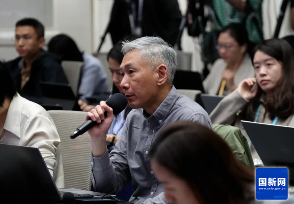 中国报记者提问(赵一帆 摄)